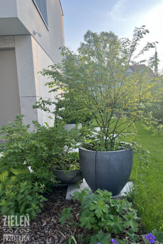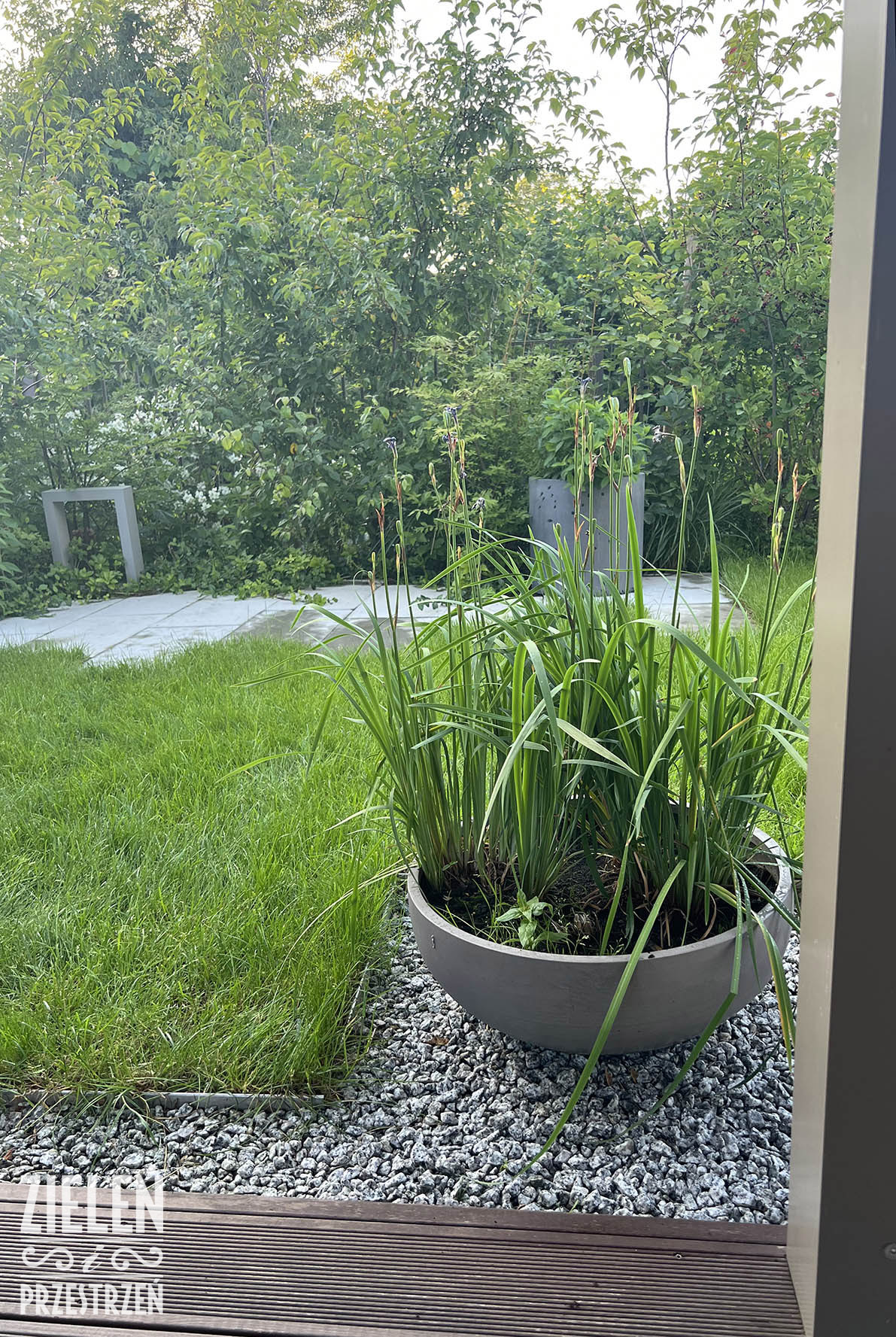 Głównym wyzwaniem tego ogrodu było dostosowanie rozwiązań do specyficznych uwarunkowań terenu. Ze względu na lokalizację osiedla na podniesionym terenie zalewowym, gdzie zastosowano system drenażowy, musieliśmy zastosować niestandardowe rozwiązania w zakresie kompozycji zieleni.